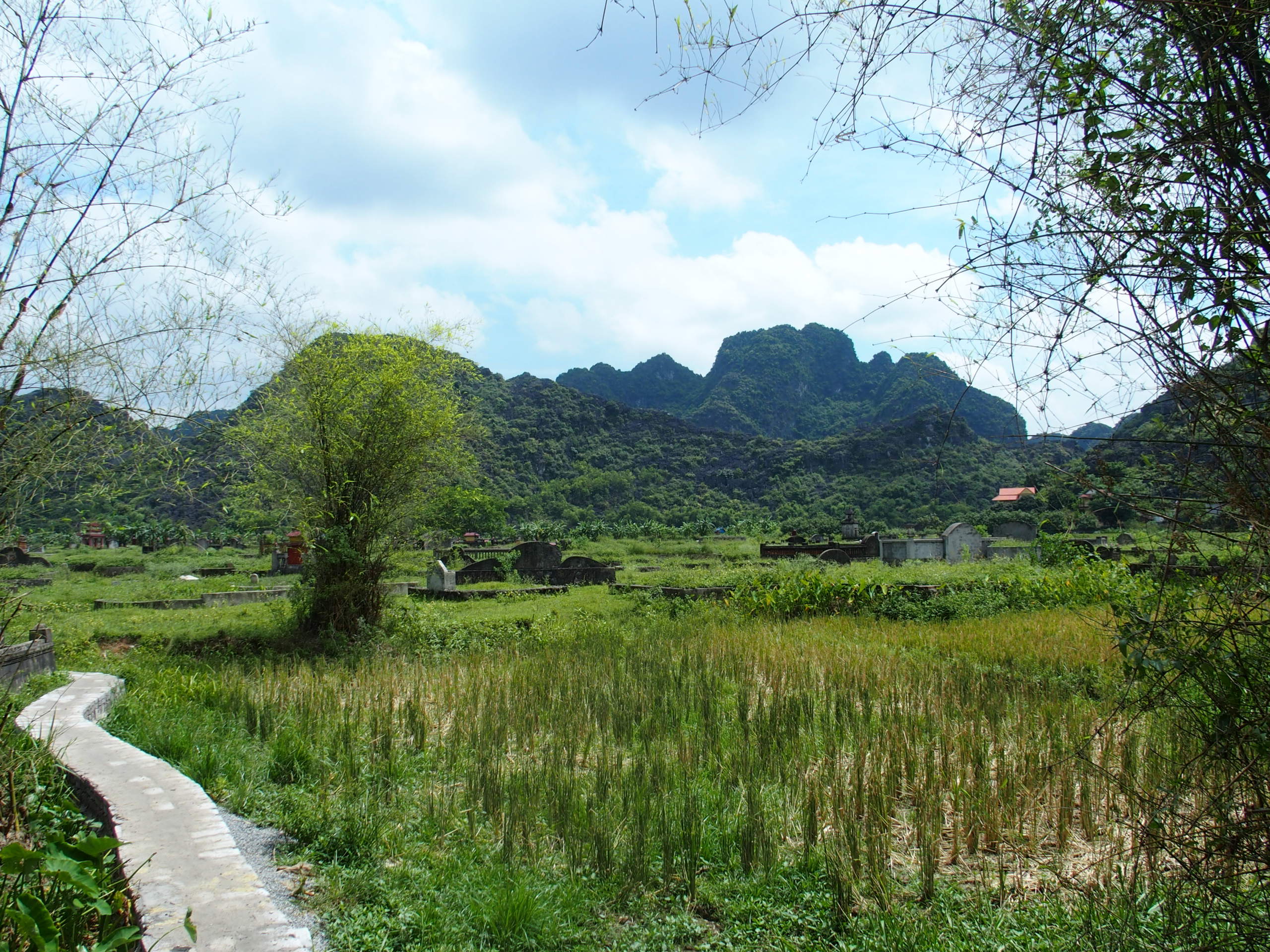 Die Strecke war wieder einwandfrei und die Landschaften wurden zunehmend schöner. In Ninh Binh angekommen habe ich an einem kleinen Supermarkt gestoppt um mir was zu trinken zu kaufen. Keine zwei Minuten später stand ein Mann neben mir und wollte wissen, ob ich schon ein Hotel hätte. Da dem nicht so war, bin ich seiner Empfehlung gefolgt und habe dort ein Zimmer gebucht. Sein englisch war ziemlich gut und deshalb habe ich mir mal direkt ein paar Empfehlungen geben lassen, was ich mir anschauen sollte. Im Vorfeld hatte ich gelesen, dass es Sinn macht sich den Weg von einem Local zeigen zu lassen. Also bin ich dieser Empfehlung gefolgt und habe über ihn einen Guide gebucht, der mich am nächsten Tag durch die Gegend geleitet hat.